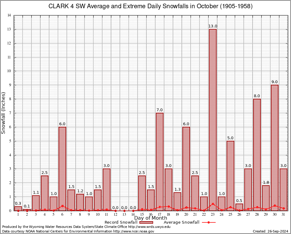 October Average and Extreme Daily Snowfall AMounts (1905-1958)