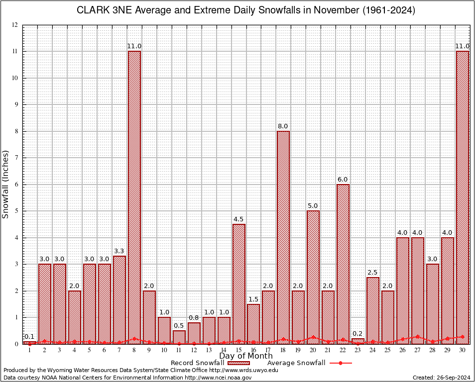 CLARK 3NE (481775) November Average and Extreme Daily Snowfall AMounts (1961-2024) To index page for CLARK 3NE