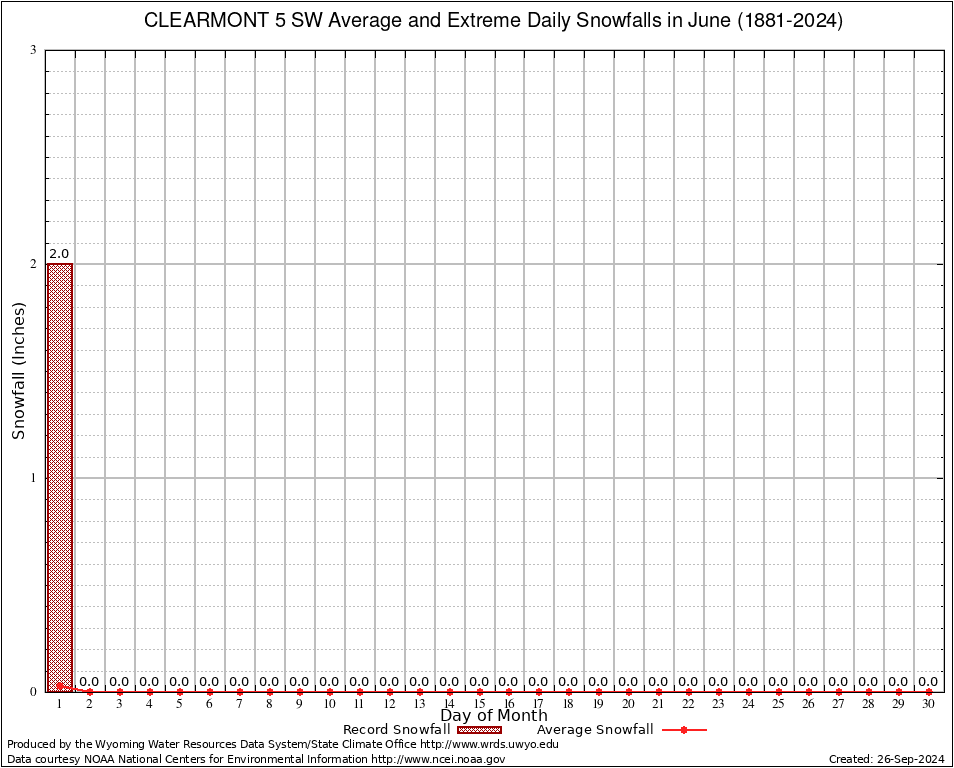 June Average and Extreme Daily Snowfall AMounts (1881-2024)