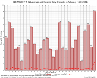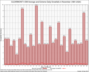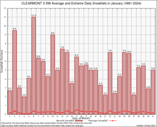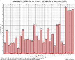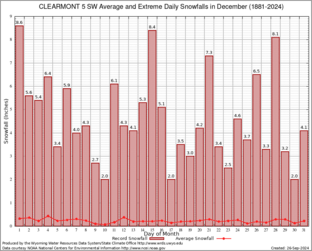 Record Extreme and Average Daily Snowfall (1881-2024)