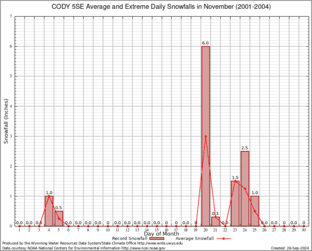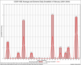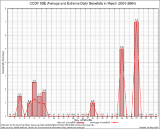 Record Extreme and Average Daily Snowfall (2001-2004)