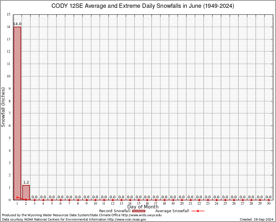 June Average and Extreme Daily Snowfall AMounts (1949-2024)