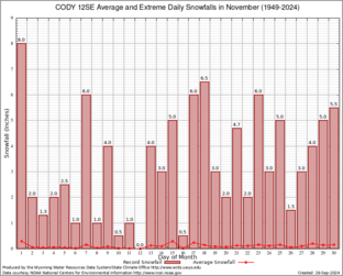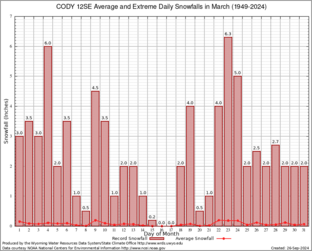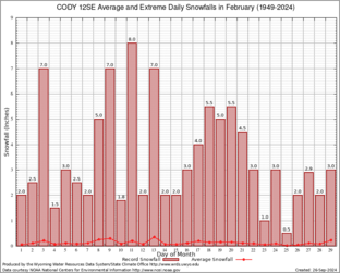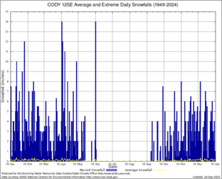 Record Extreme and Average Daily Snowfall (1949-2024)