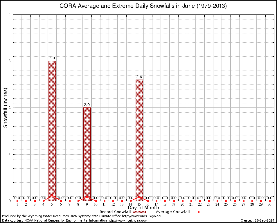 CORA (482054) June Average and Extreme Daily Snowfall AMounts (1979-2013) To index page for CORA