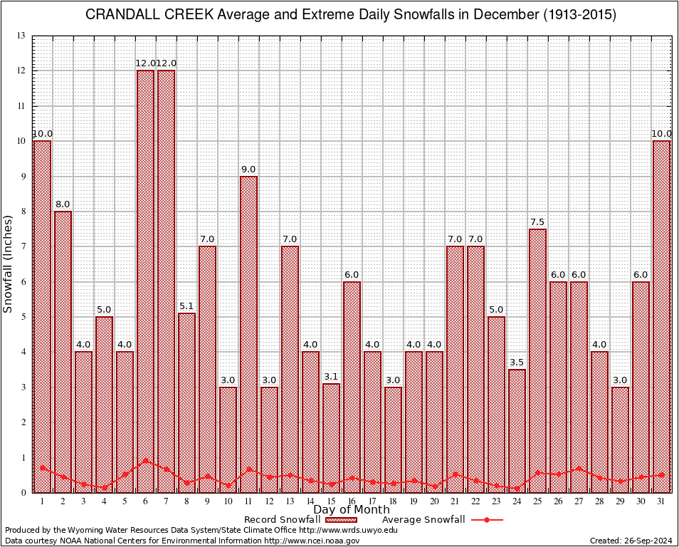 December Average and Extreme Daily Snowfall AMounts (1913-2015)
