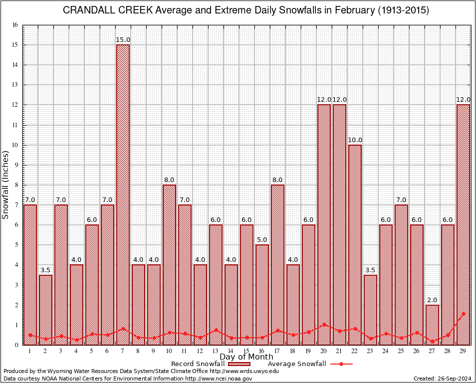 February Average and Extreme Daily Snowfall AMounts (1913-2015)