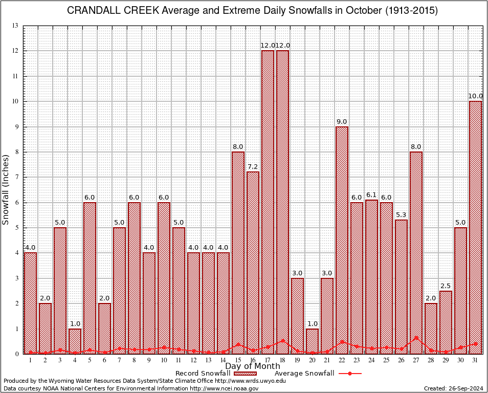October Average and Extreme Daily Snowfall AMounts (1913-2015)