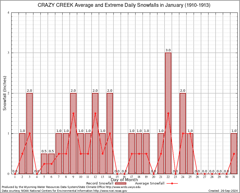 January Average and Extreme Daily Snowfall AMounts (1910-1913)