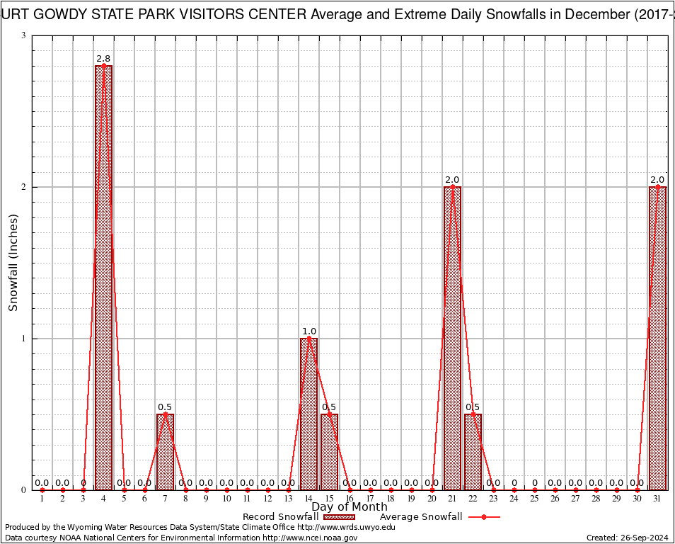 December Average and Extreme Daily Snowfall AMounts (2017-2018)