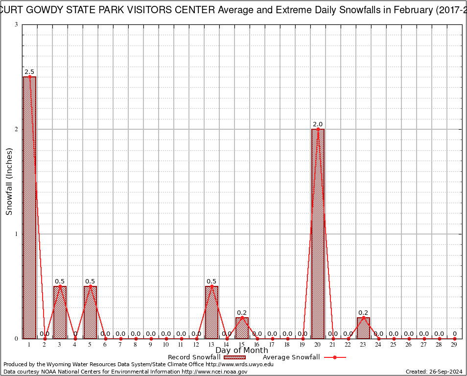 February Average and Extreme Daily Snowfall AMounts (2017-2018)