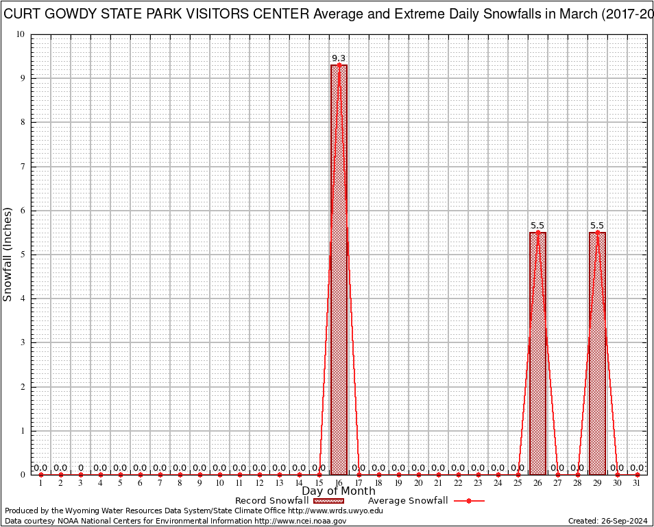 March Average and Extreme Daily Snowfall AMounts (2017-2018)