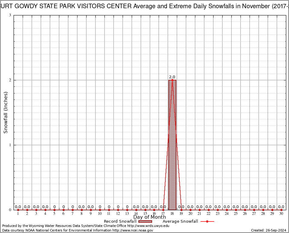 November Average and Extreme Daily Snowfall AMounts (2017-2018)
