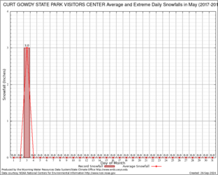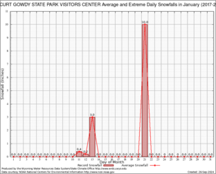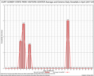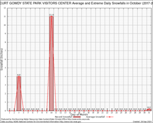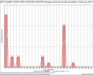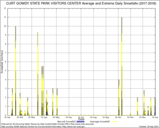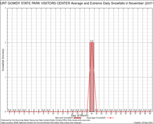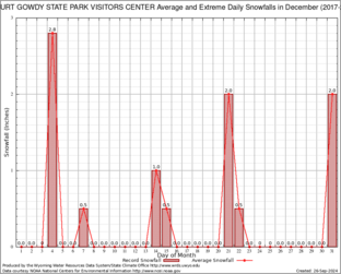CURT GOWDY STATE PARK VISITORS CENTER (482233) Record Extreme and Average Daily Snowfall (2017-2018) See Here for Other Stations