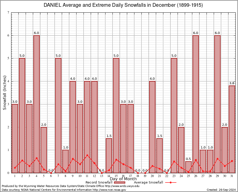 DANIEL (482235) December Average and Extreme Daily Snowfall AMounts (1899-1915) To index page for DANIEL