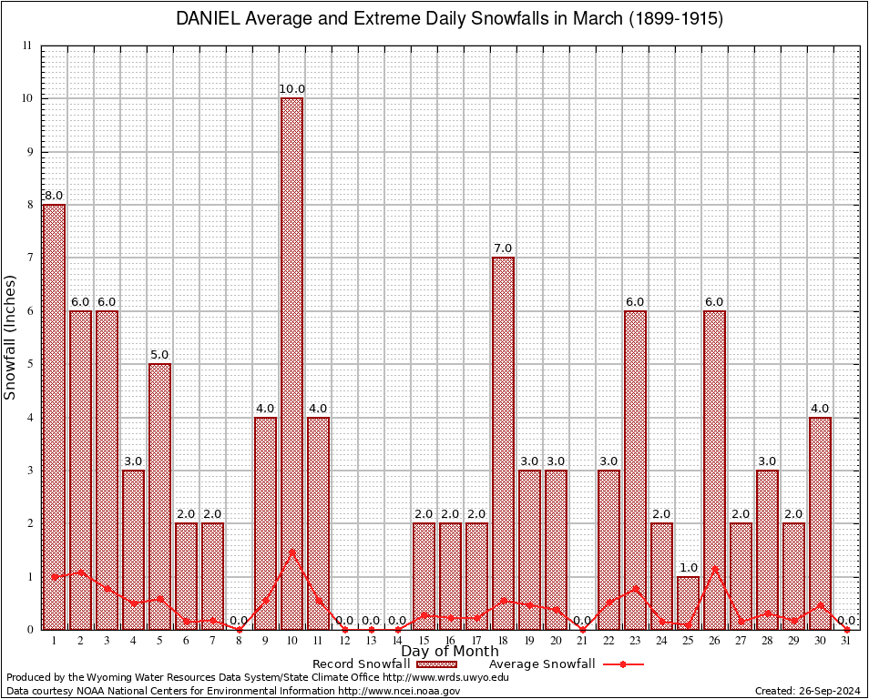 DANIEL (482235) March Average and Extreme Daily Snowfall AMounts (1899-1915) To index page for DANIEL