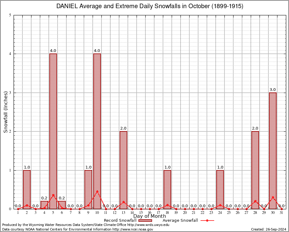 DANIEL (482235) October Average and Extreme Daily Snowfall AMounts (1899-1915) To index page for DANIEL
