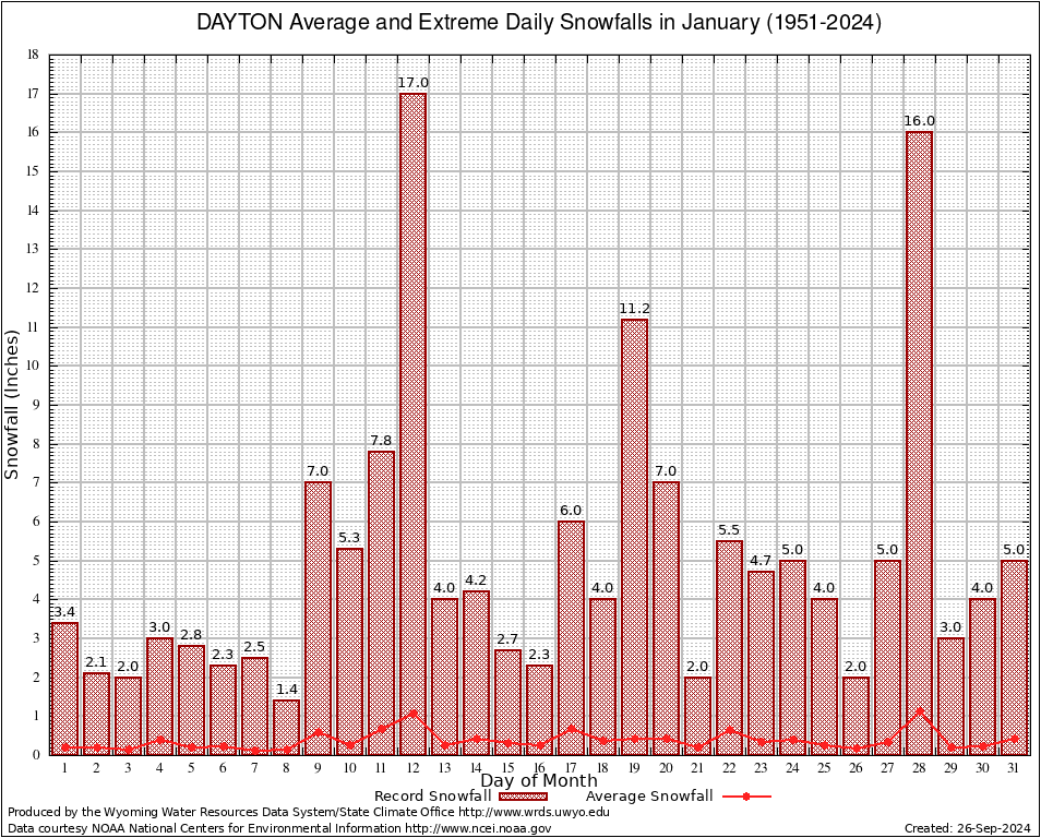 DAYTON (482399) January Average and Extreme Daily Snowfall AMounts (1951-2024) To index page for DAYTON
