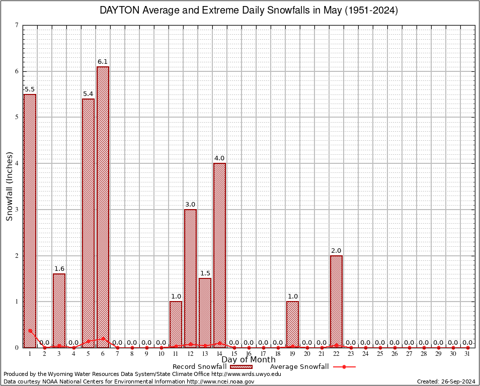 DAYTON (482399) May Average and Extreme Daily Snowfall AMounts (1951-2024) To index page for DAYTON