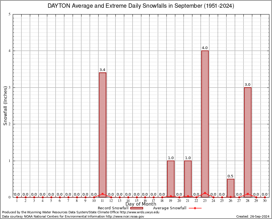 DAYTON (482399) September Average and Extreme Daily Snowfall AMounts (1951-2024) To index page for DAYTON