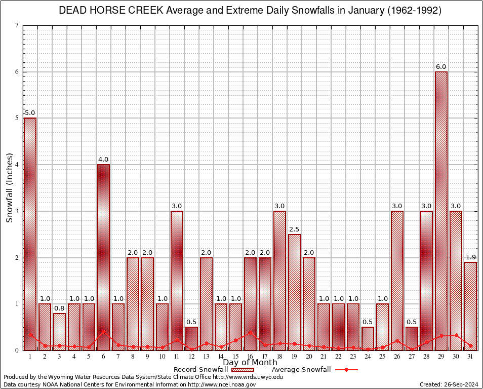 January Average and Extreme Daily Snowfall AMounts (1962-1992)