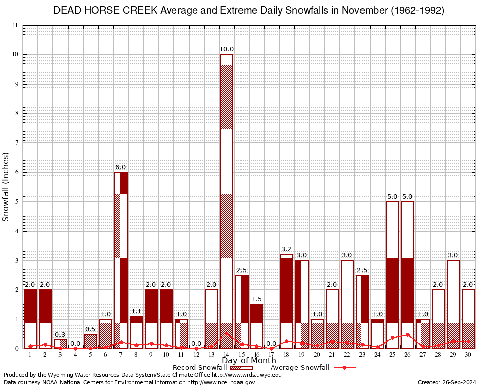 November Average and Extreme Daily Snowfall AMounts (1962-1992)
