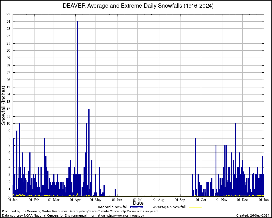 DEAVER (482415) Annual Average and Extreme Daily Snowfall AMounts (1916-2024) To index page for DEAVER