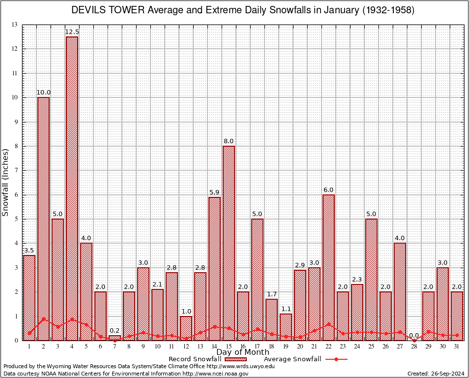 January Average and Extreme Daily Snowfall AMounts (1932-1958)