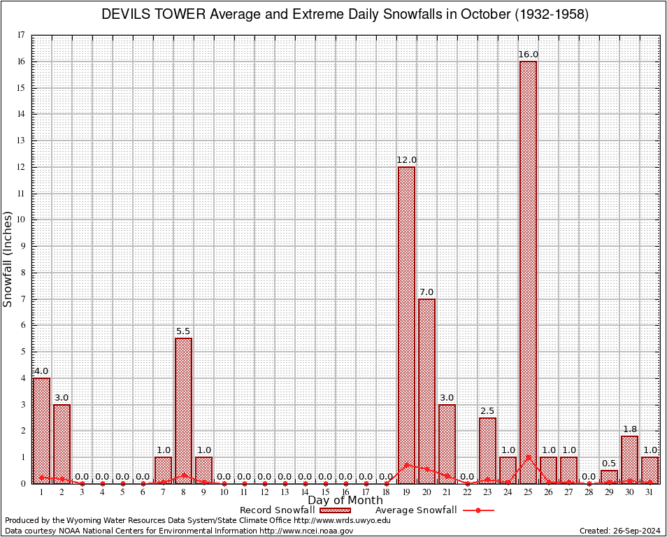 October Average and Extreme Daily Snowfall AMounts (1932-1958)