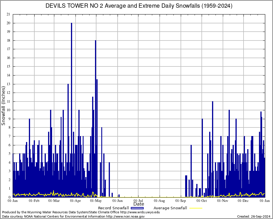 Annual Average and Extreme Daily Snowfall AMounts (1959-2024)