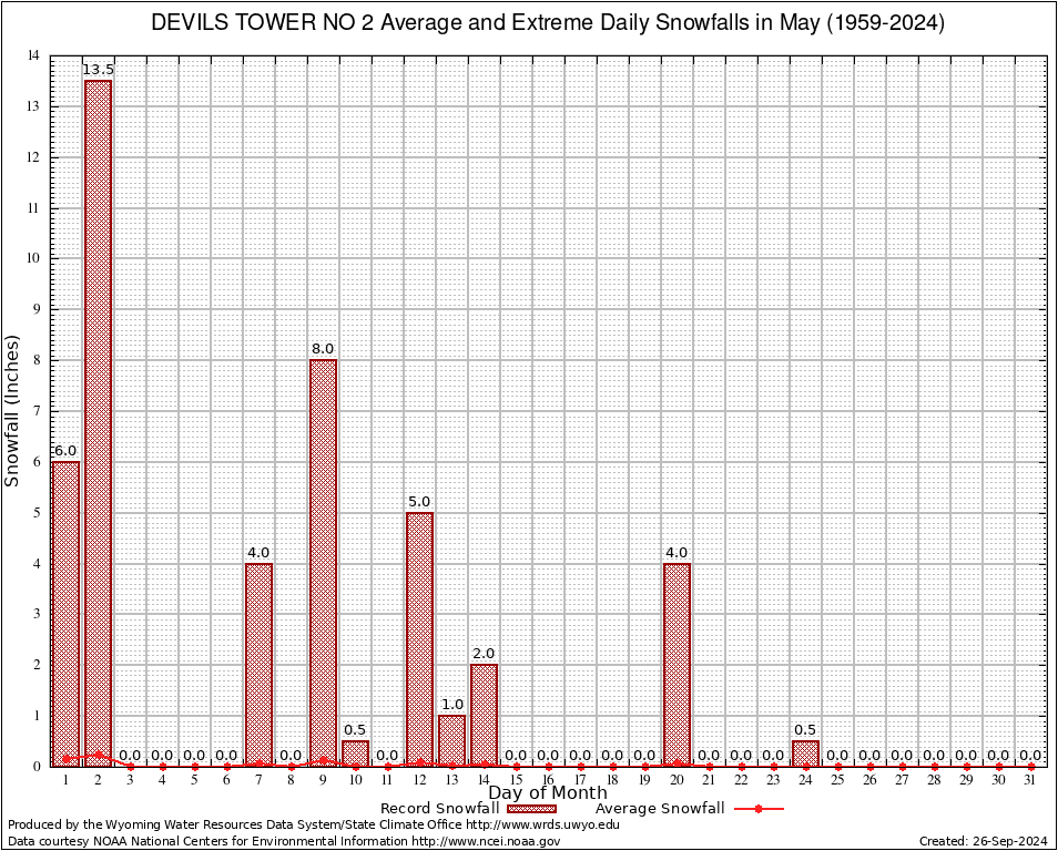 May Average and Extreme Daily Snowfall AMounts (1959-2024)