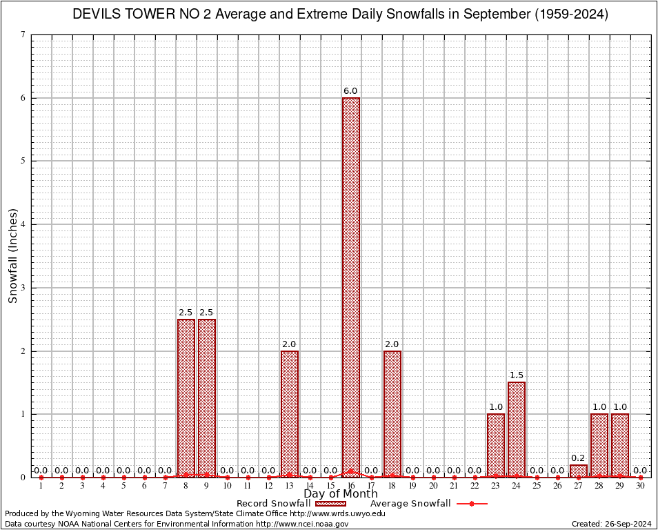 September Average and Extreme Daily Snowfall AMounts (1959-2024)