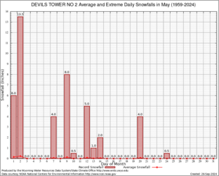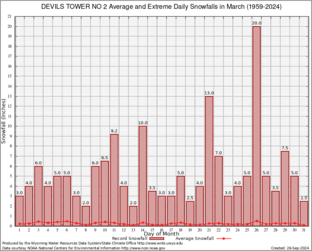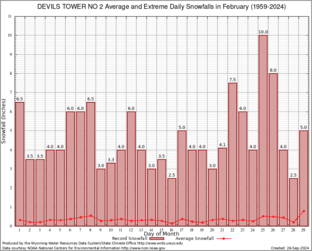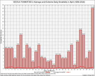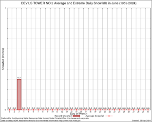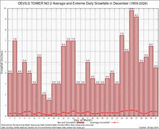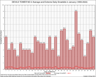DEVILS TOWER NO 2 (482466) Record Extreme and Average Daily Snowfall (1959-2024) See Here for Other Stations