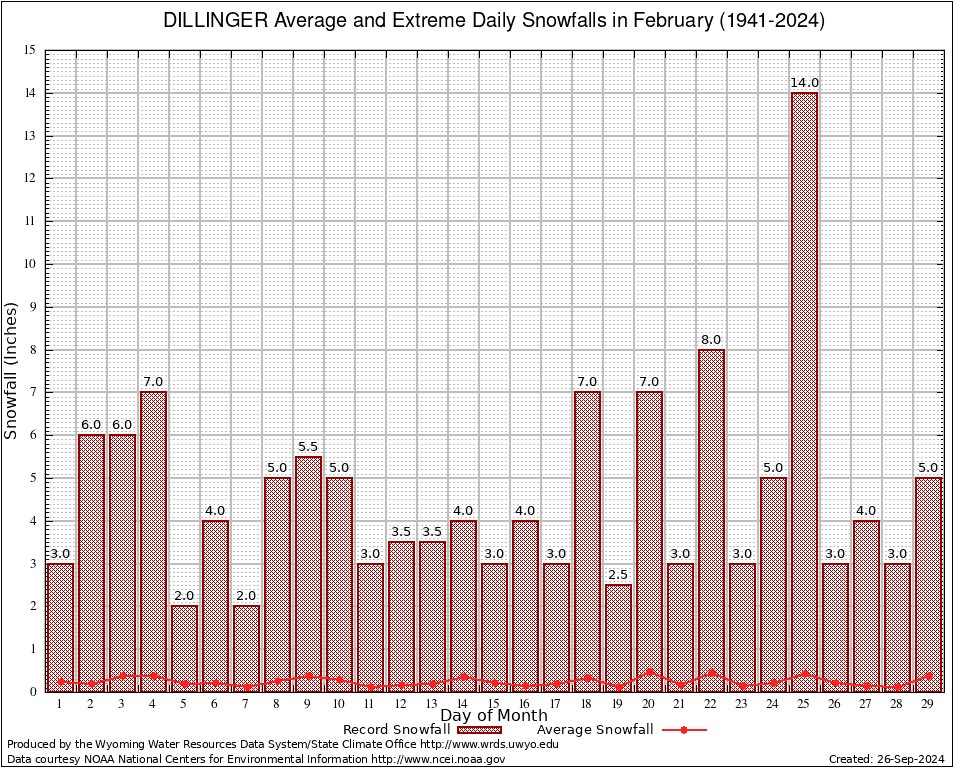 DILLINGER (482580) February Average and Extreme Daily Snowfall AMounts (1941-2024) To index page for DILLINGER
