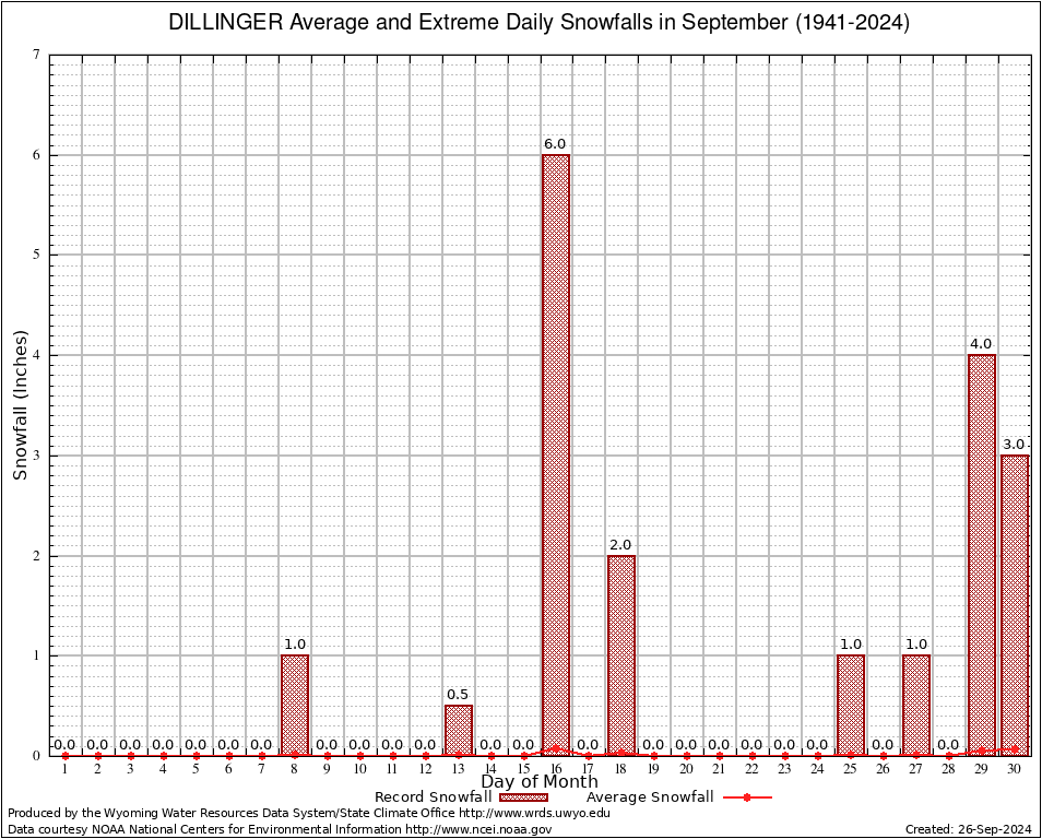 DILLINGER (482580) September Average and Extreme Daily Snowfall AMounts (1941-2024) To index page for DILLINGER