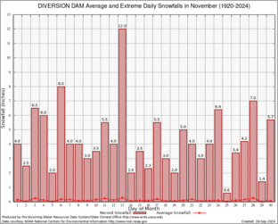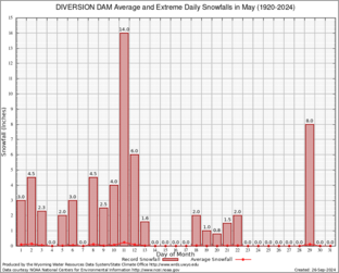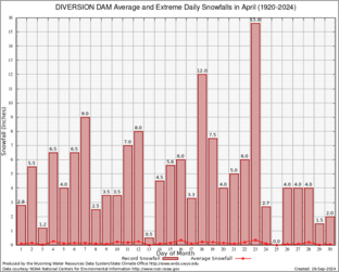 Record Extreme and Average Daily Snowfall (1920-2024)
