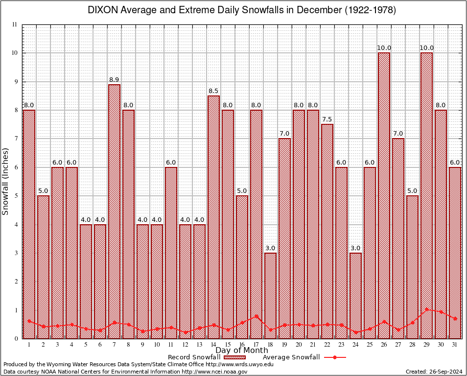 DIXON (482610) December Average and Extreme Daily Snowfall AMounts (1922-1978) To index page for DIXON