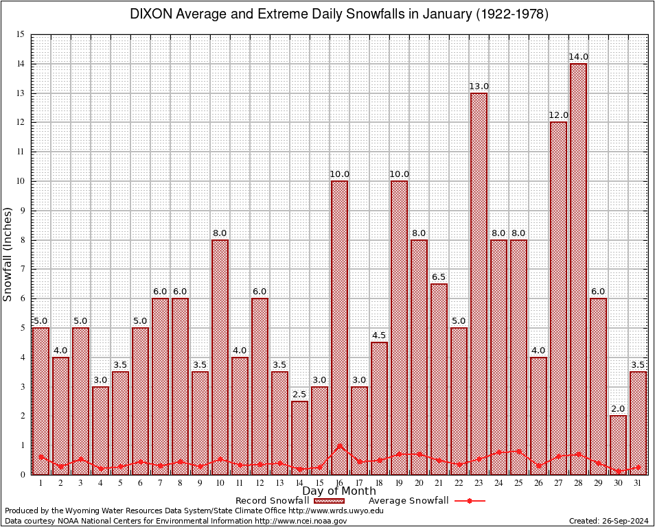 DIXON (482610) January Average and Extreme Daily Snowfall AMounts (1922-1978) To index page for DIXON