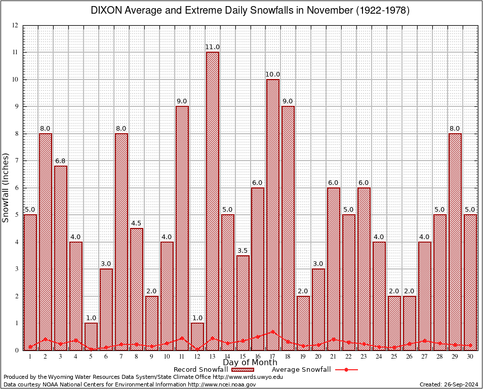 DIXON (482610) November Average and Extreme Daily Snowfall AMounts (1922-1978) To index page for DIXON