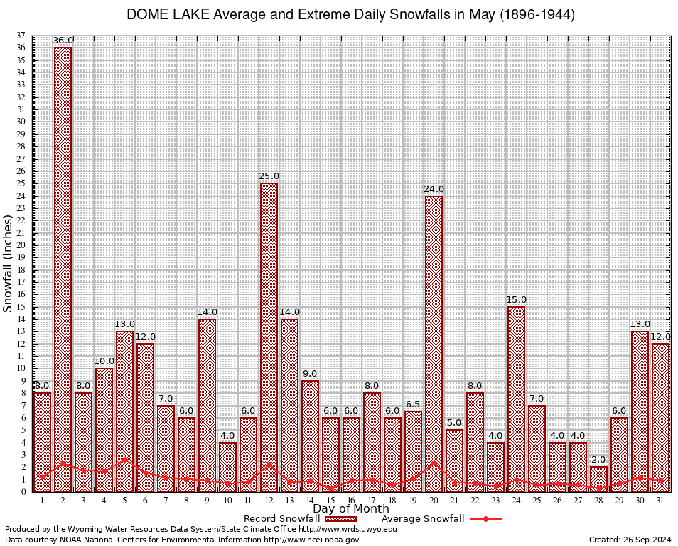 May Average and Extreme Daily Snowfall AMounts (1896-1944)