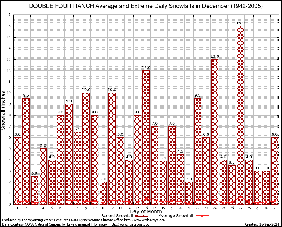 December Average and Extreme Daily Snowfall AMounts (1942-2005)