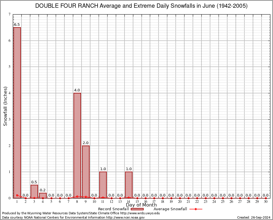 June Average and Extreme Daily Snowfall AMounts (1942-2005)