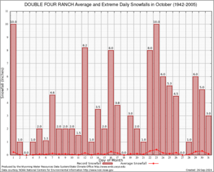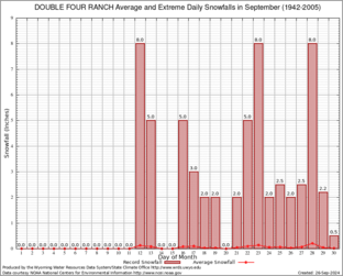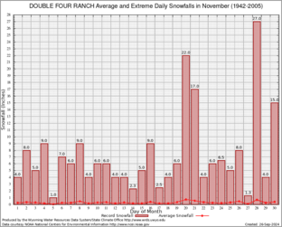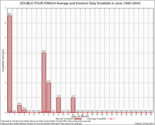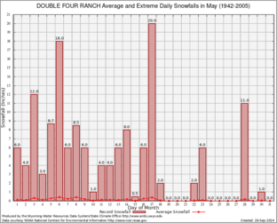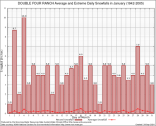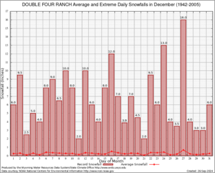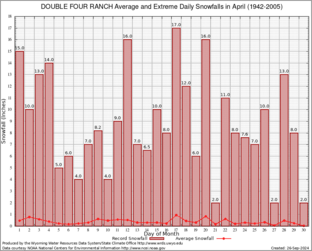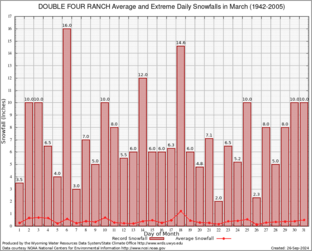 DOUBLE FOUR RANCH (482680) Record Extreme and Average Daily Snowfall (1942-2005) See Here for Other Stations