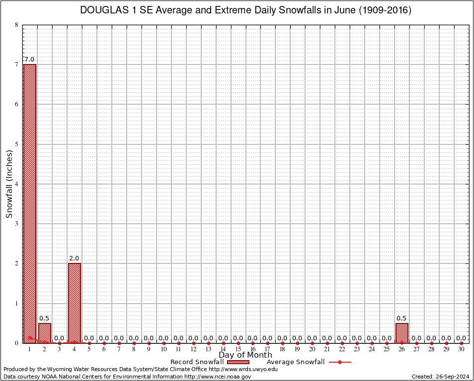 June Average and Extreme Daily Snowfall AMounts (1909-2016)