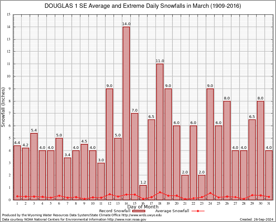 March Average and Extreme Daily Snowfall AMounts (1909-2016)