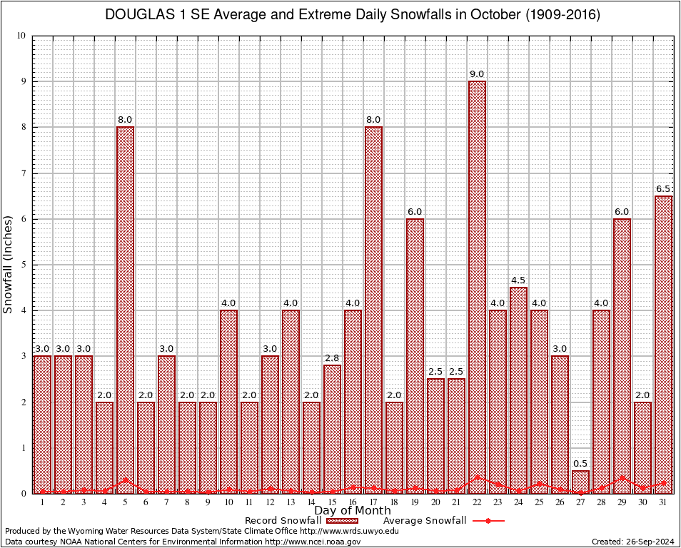 October Average and Extreme Daily Snowfall AMounts (1909-2016)