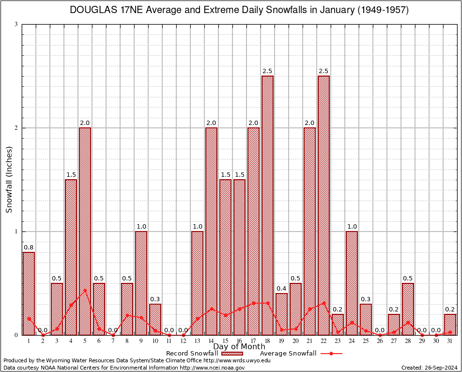 January Average and Extreme Daily Snowfall AMounts (1949-1957)