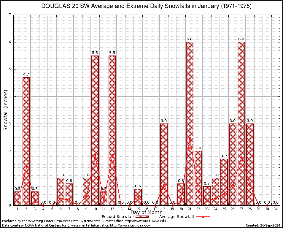 January Average and Extreme Daily Snowfall AMounts (1971-1975)