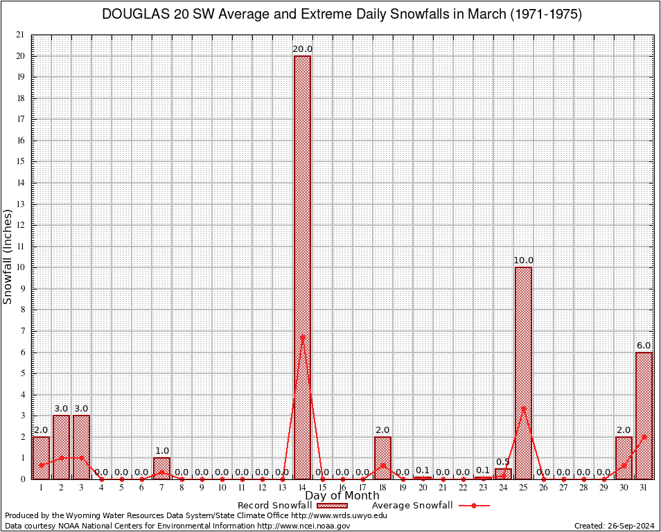 March Average and Extreme Daily Snowfall AMounts (1971-1975)