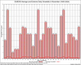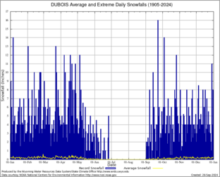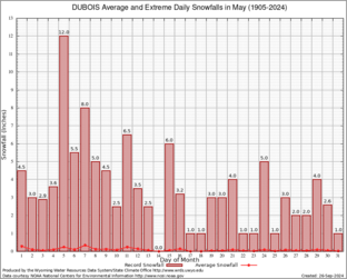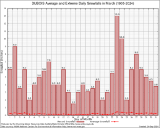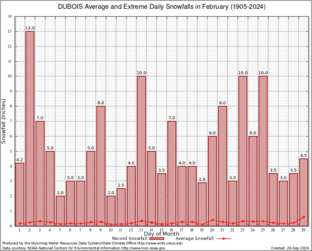 Record Extreme and Average Daily Snowfall (1905-2024)