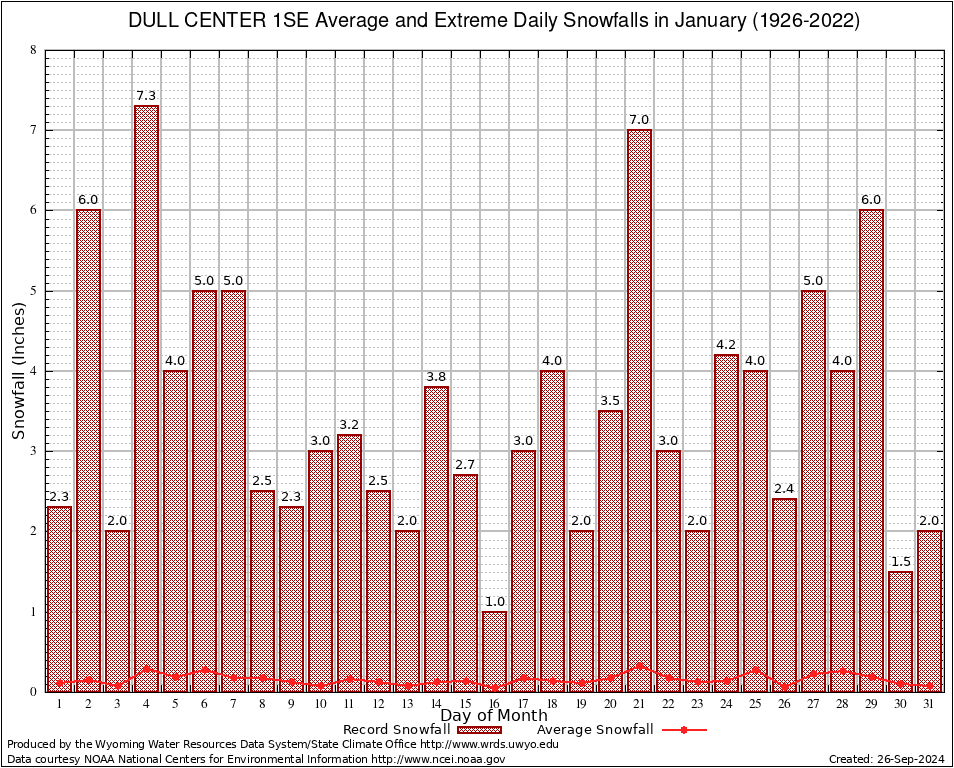January Average and Extreme Daily Snowfall AMounts (1926-2022)